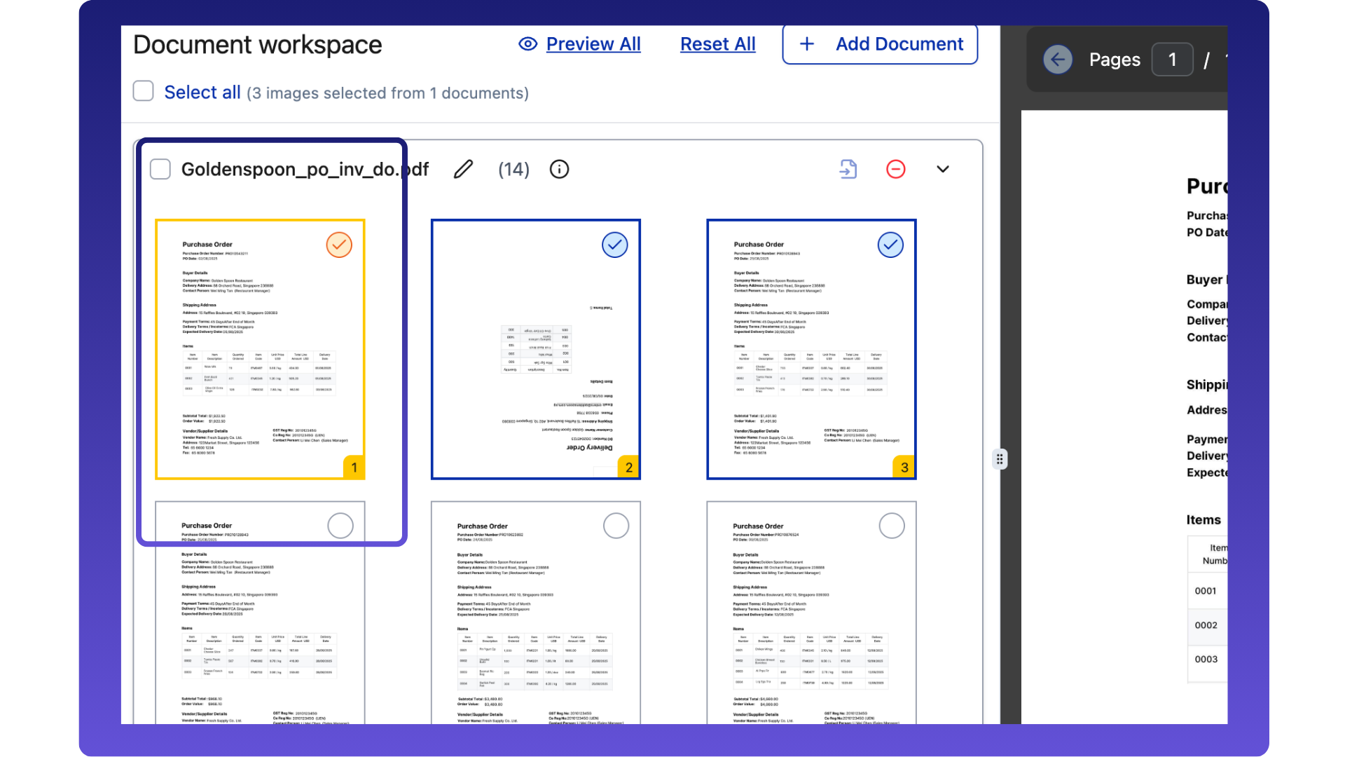 With the Document Editor, you can transform a messy bundle of mixed documents into a neatly organized collection, ready for digital processing, sharing, or storage. This tool is ideal for enterprises that handle large document volumes across departments like Finance, Operations, or HR.