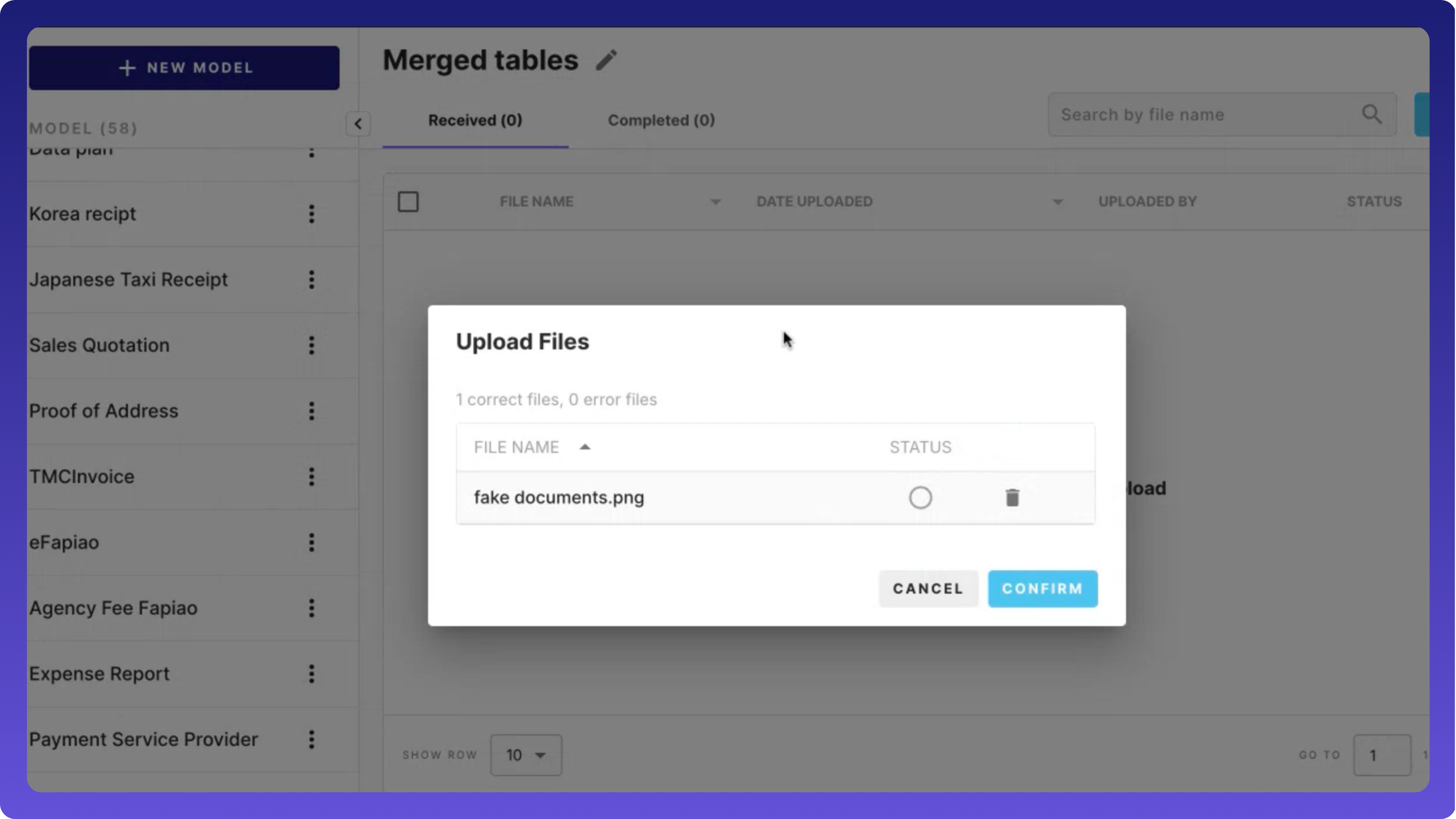 It's a 3-step process: we create models, map them to a queue, and scan documents to create a model. Navigate to the models module here.