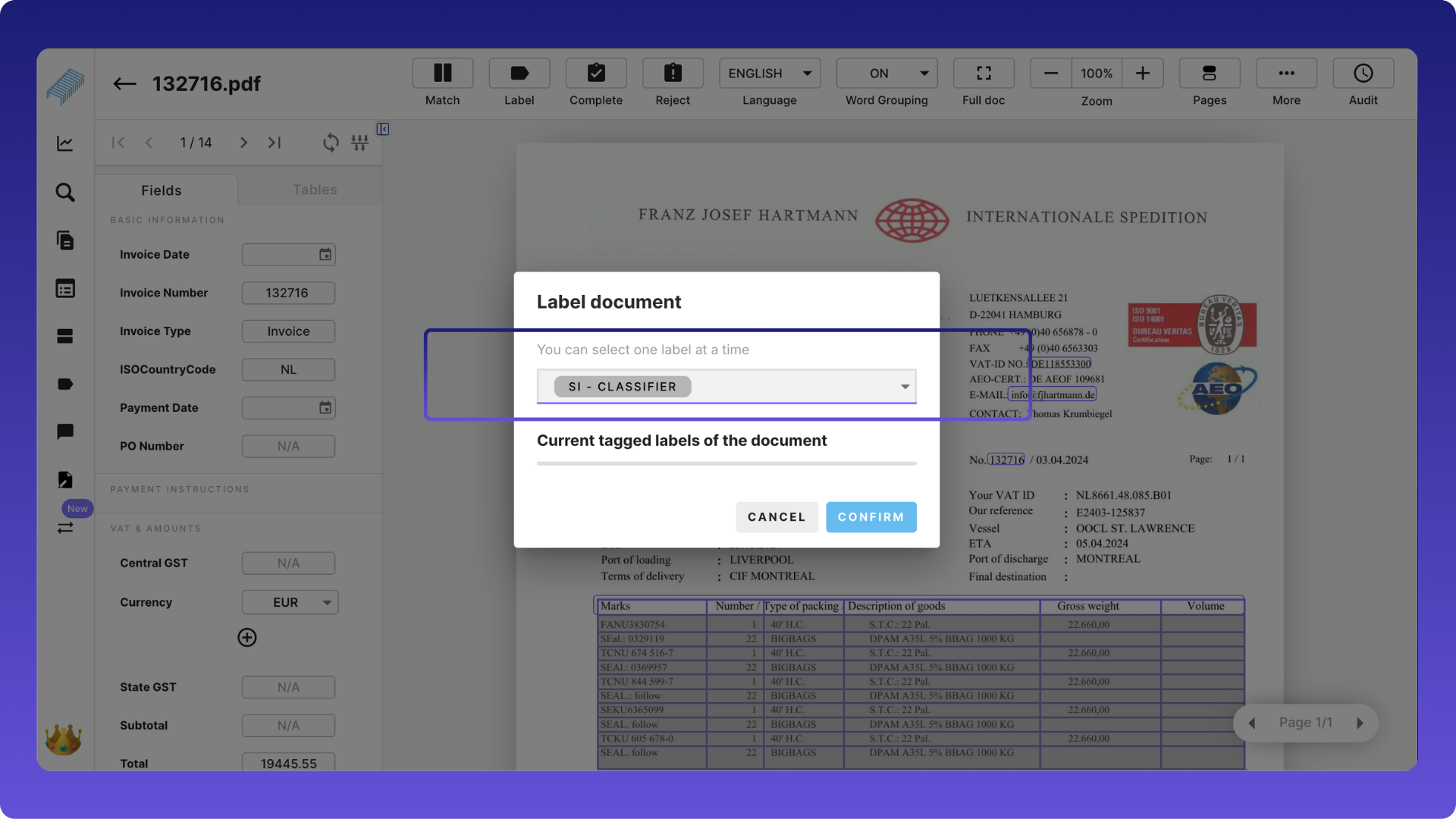 To automate it using AI, Staple AI launched Labelling. Invoice, purchase order, delivery note classification is a great example in retail.